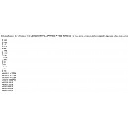 Puede realizar el certificado de conformidad si la clasificación de su vehículo es 3133, VEHÍCULO MIXTO ADAPTABLE A TODO TERRENO, y si tiene como contraseña de homologación alguna de la siguientes: